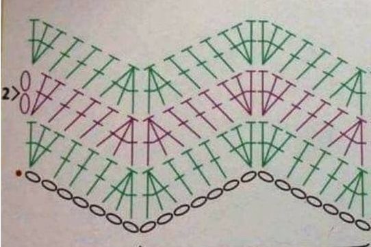 Classico motivo ad onde perfetto per una sciarpa, una coperta. Potete usare un unico colore oppure colori alternati o addirittura lavorare con filati diversi